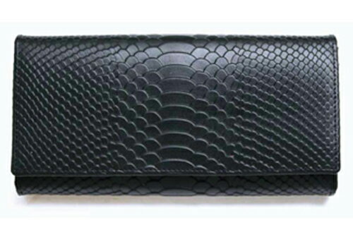 【送料無料】重厚な蛇柄 金運如意 お札・小銭 仕分け 長財布 BK
