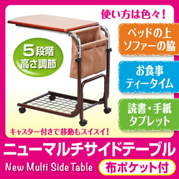 高さ調節可能♪ニューマルチサイドテーブル(布ポケット付き)