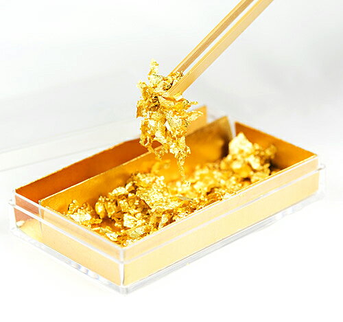 ふたを開けるときの空気の動きでも舞いあがってしまう、とても繊細で薄い金箔は食にダイヤモンドの輝き以上のきらめきを届けます。